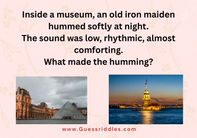 Here’s a riddle from The Iron Maiden’s Lullaby- The Iron Maiden’s Lullaby-Hard Riddles Inside a museum, an old iron maiden