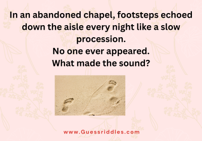 Here’s a riddle born from The Bride’s Footsteps- Hard Riddles. The Bride’s Footsteps In an abandoned chapel, footsteps echoed down